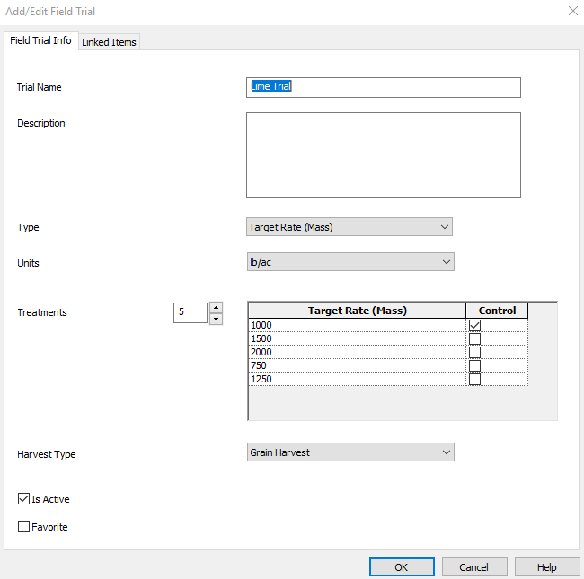 In the Add/Edit Field Trial window you will need to add the following information.