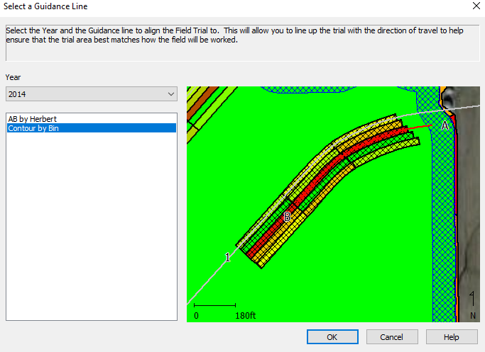 Use the Year drop down menu to select which year contains the guidance line you wish to use, and then select the appropriate line from the left. You will see a preview of the guidance pattern selected to verify it is correct.