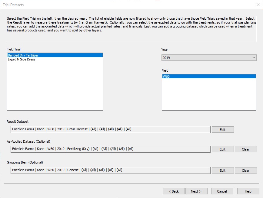 - The Year and Field: This helps to understand which fields had this trial on them.